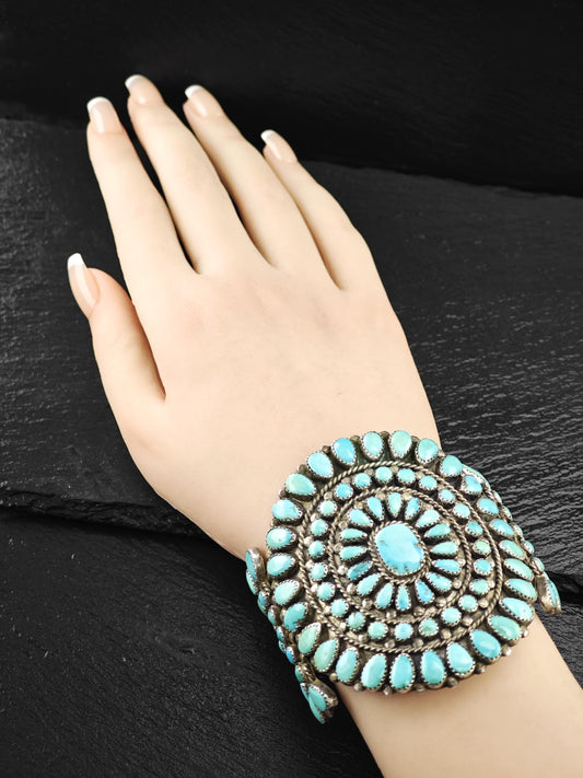 1950's Native American Sterling Silver Cuff Bracelet Petit Point Turquoise Ingot Silver