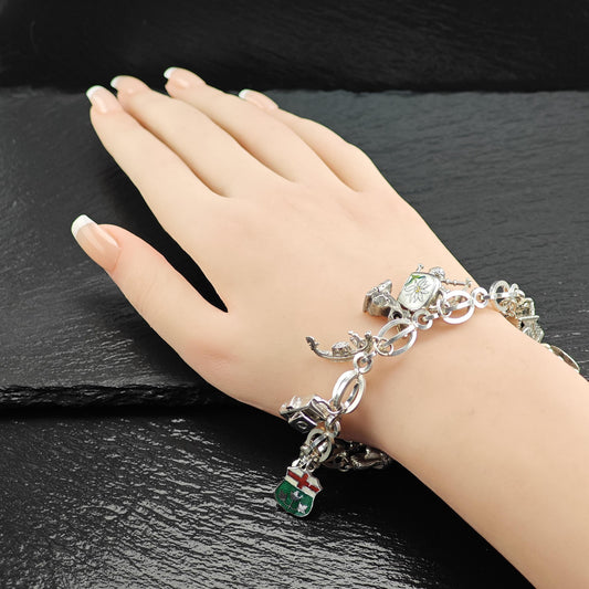 1950's 10 Charm Bracelet 1 Pewter, Enamel, Skier Sterling Silver