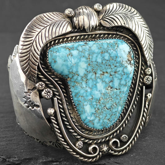 Kewa Cuff Bracelet Blue Kingman's Turquoise Leaf Sterling Silver