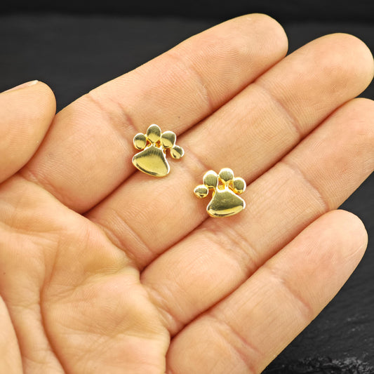 14K Gold Plated Puppy Paw Stud Earrings Sterling Silver