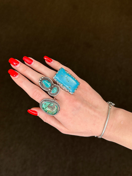 Vintage Southwest Silver Ring Turquoise Rectangle Large Sterling Size 11