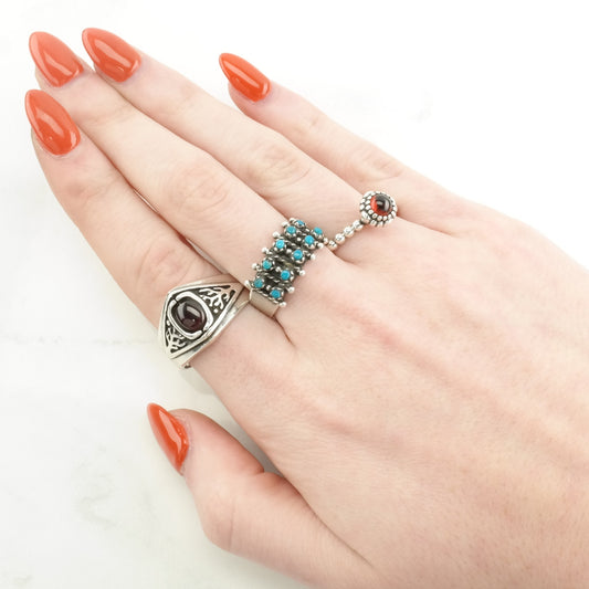 Vintage Native American Silver Ring Turquoise Coral Shadowbox Band Sterling Size 11
