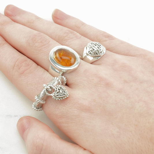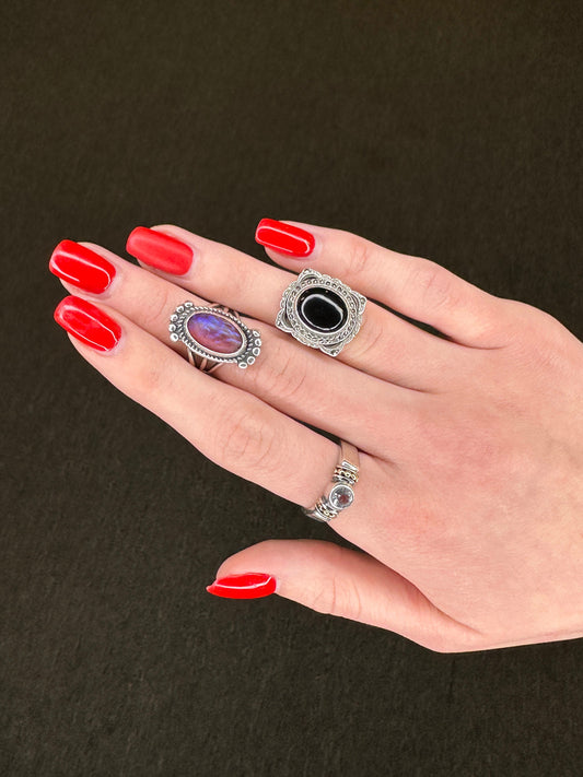 Vintage Sterling Silver Ring Amethyst, Rose Quartz Size 4 3/4