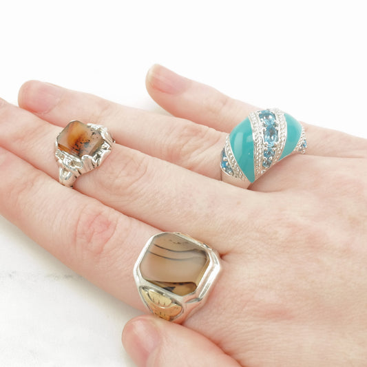 Vintage Sterling Silver Ring Dendritic Agate Orange Size 4 1/2