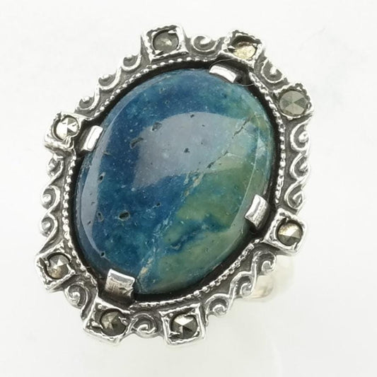 Vintage Art Deco Silver Ring Gemstone Marcasite Sterling Blue Size 3 1/2