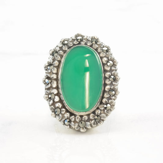 Vintage Sterling Silver Ring Chrysoprase Floral Green Size 2 3/4