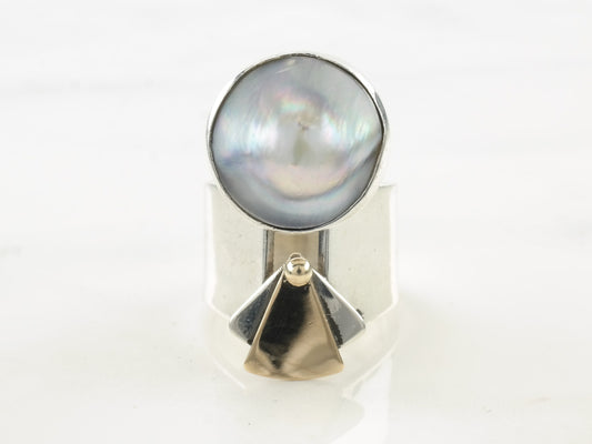 Vintage Modernist Silver Ring Pearl Two tone Sterling Size 6 1/2