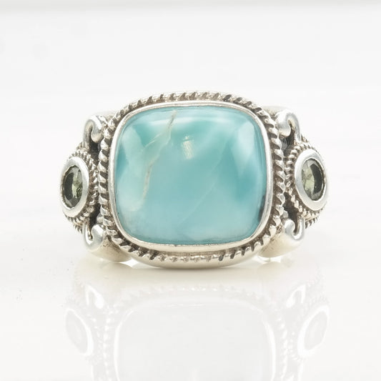 Vintage Designer Ring Larimar, Peridot Sterling Silver Size 6 3/4