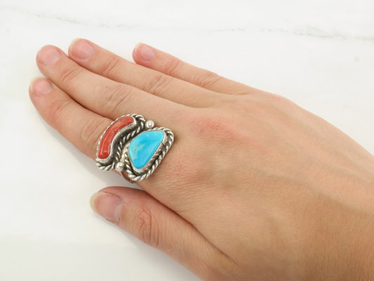 Sterling Silver Ring Cerillos Turquoise Coral Size 6.5