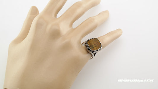 Filigree Sterling Silver Ring Size 6.5 Vintage Tiger Eye Orange