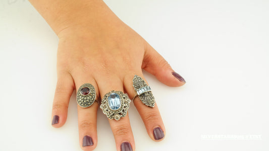 Vintage Art Deco Silver Ring Topaz Marcasite Sterling Blue Size 6.5