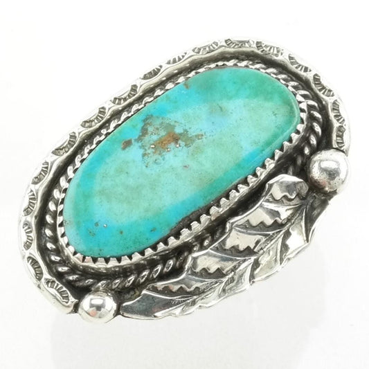 Vintage Native American Silver Ring Turquoise Leaf, Large Sterling Blue Size 6 1/2