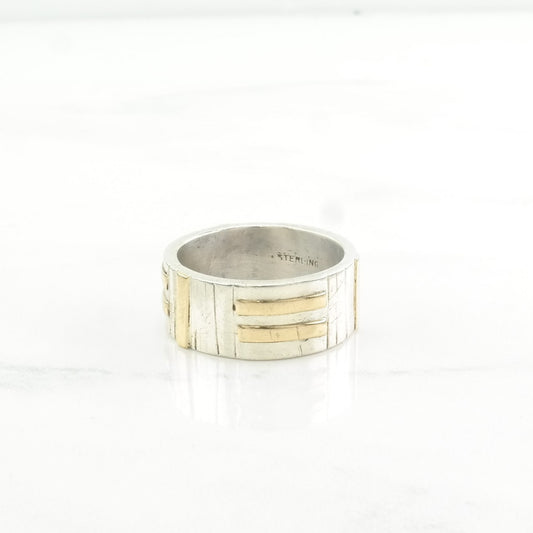 Vintage Ruff Silver Ring Band Gold Toned Accents Sterling Size 6 1/2