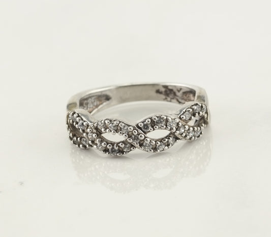 Vintage Pandora Silver Ring CZ Band Sterling Size 6 3/4