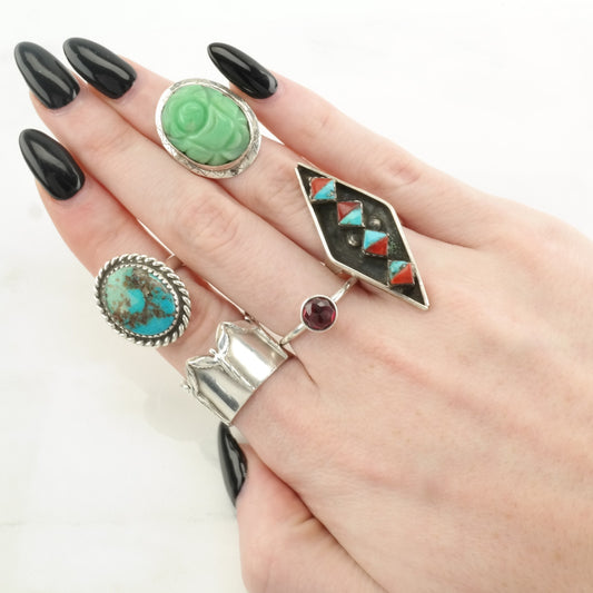 Vintage Native American Silver Ring Turquoise, Coral Sterling Size 6 3/4