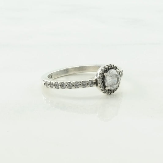 Vintage Pandora Silver Ring CZ Halo Sterling Size 6 3/4