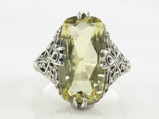 Vintage Sterling Silver Ring Citrine Ornate Size 6 3/4