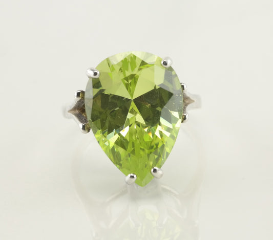 Vintage Sterling Silver Green CZ Ring Size 6 1/2