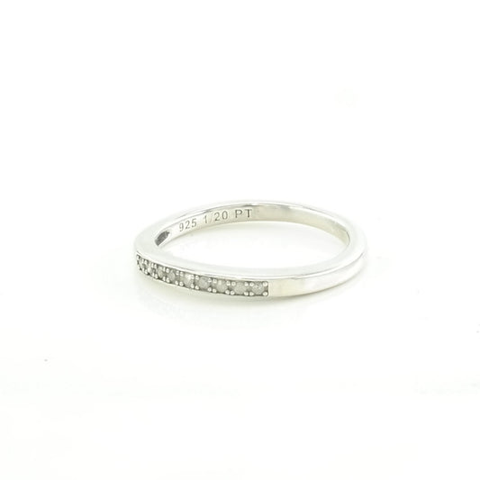 Vintage Sterling Silver Ring Diamond 2mm Band Size 6 3/4