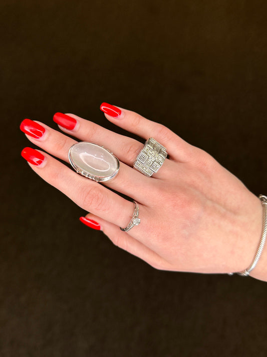 Vintage Sterling Silver Ring Diamond Dainty Size 6 3/4