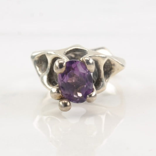 Vintage Modernist Silver Ring Amethyst Sterling Purple Size 6