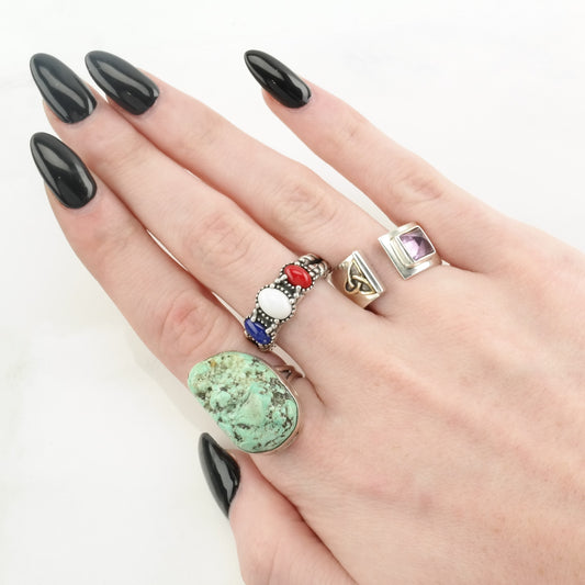 Vintage Carolyn Pollack Ring Spiny Oyster, Turquoise, Lapis Lazuli Inlay Sterling Silver Size 6 1/4