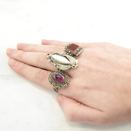 Vintage Art Deco Silver Ring Amethyst Marcasite Sterling Purple Size 6