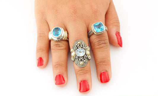 Vintage Designer Sterling Silver Ring Size 6 Blue Topaz