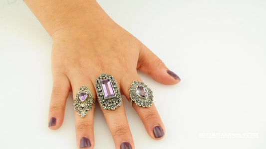 Vintage Art Deco Silver Ring Purple Stone Ornate Sterling Size 6