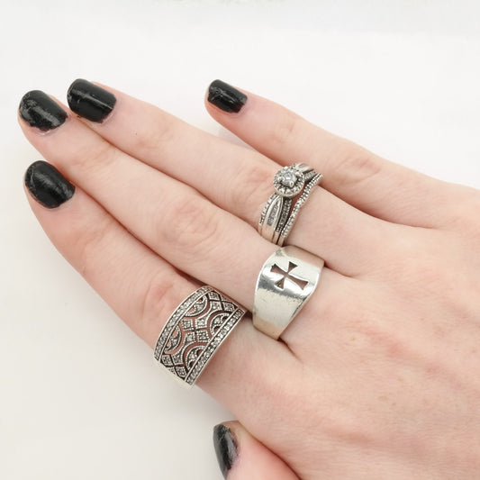 Vintage .25 cttw Silver Ring Diamond Ornate Sterling Size 7 1/2