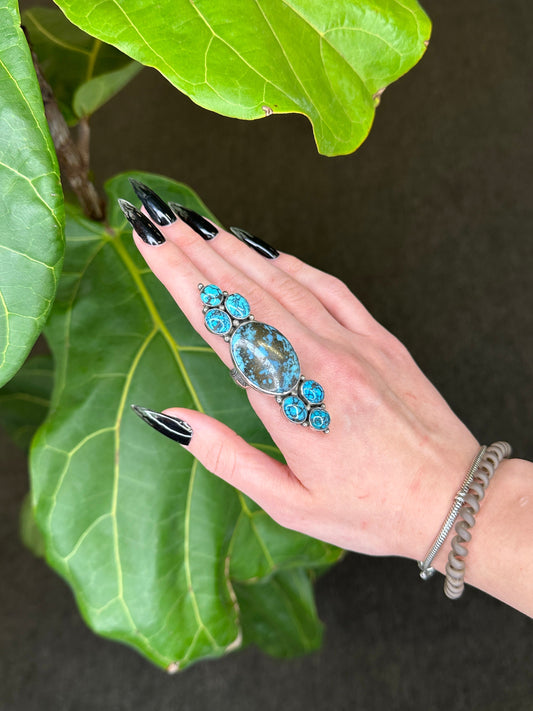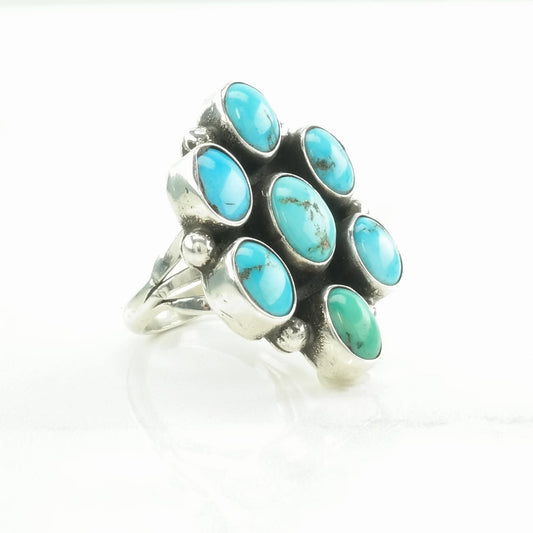 Vintage Native American Silver Ring Turquoise Floral Sterling Blue Size 7 1/2