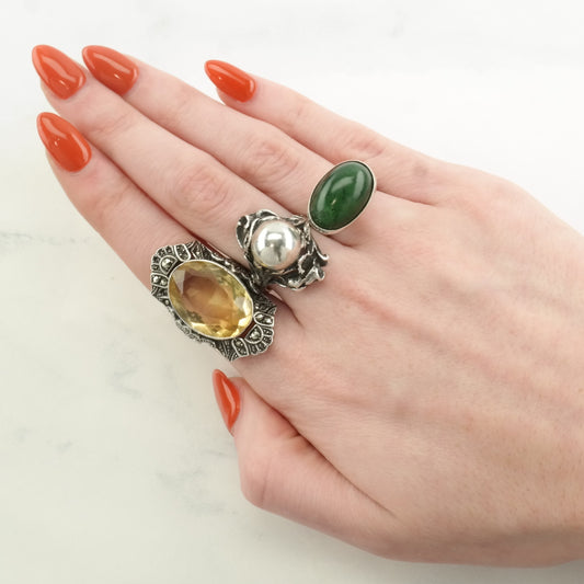 Vintage Art Deco, Germany Silver Ring Citrine Sterling Yellow Size 7 3/4