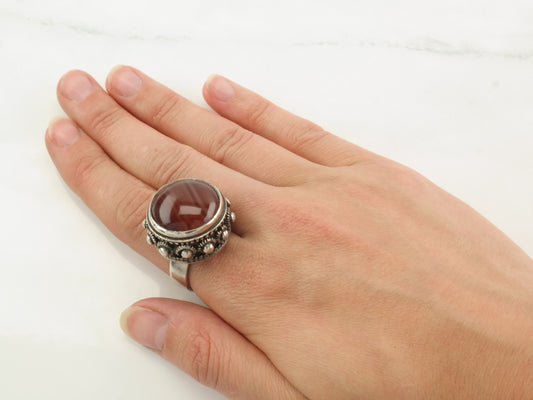 Vintage Modernist Ring Carnelian Sterling Silver Size 7 1/2