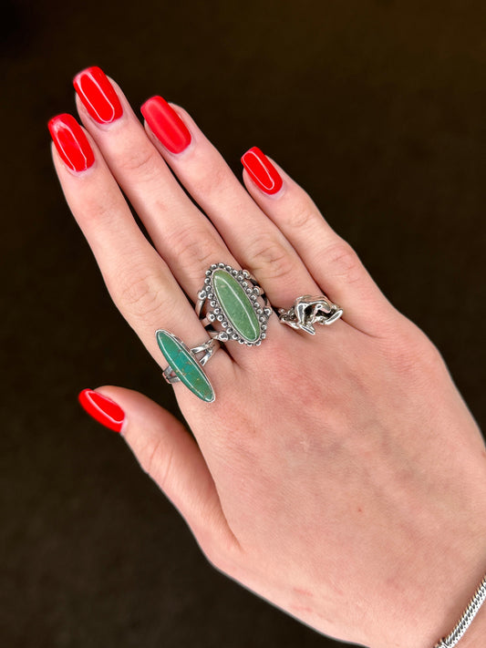 Vintage Navajo Ring Jet Turquoise Leaf Navette Sterling Silver Size 7 1/2