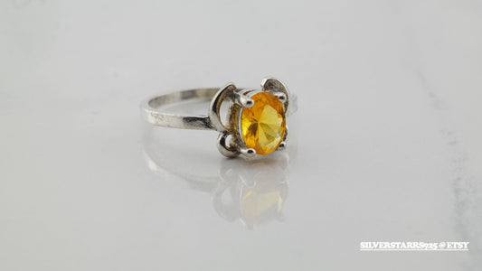 Vintage Sterling Silver Ring Citrine Yellow Size 7 1/2