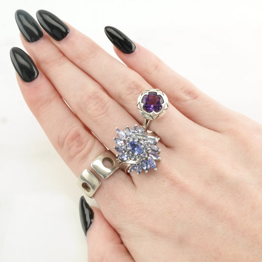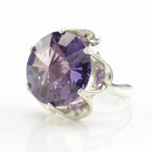 Vintage Sterling Silver Ring Amethyst Modernist Purple Size 7 3/4