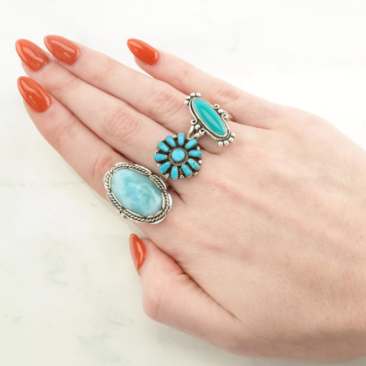 Vintage Southwest Silver Ring Turquoise Leaf Sterling Blue Size 7 1/2