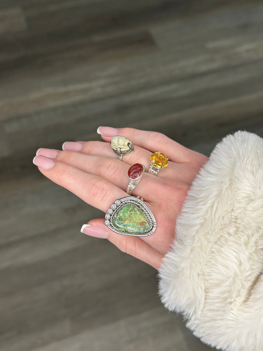 Vintage Sterling Silver Ring Paste Yellow Size 7.5
