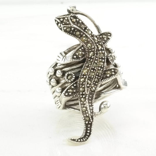 Vintage Sterling Silver Lizard Ring Marcasite , Animal Size 7 3/4
