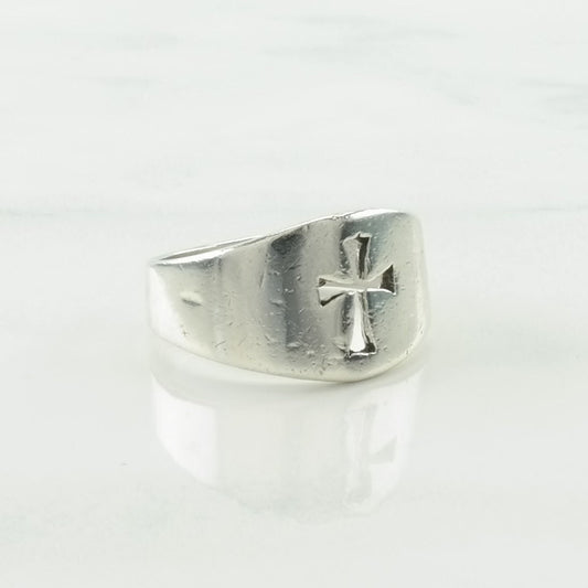 Vintage Sterling Silver Ring Cross Cutout Size 7 3/4