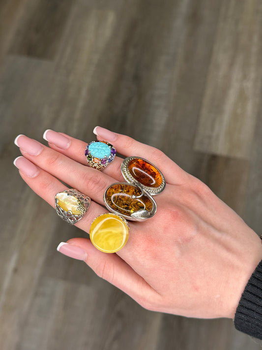 Vintage Sterling Silver Ring Baltic Amber Wide Band Orange Size 7 1/2
