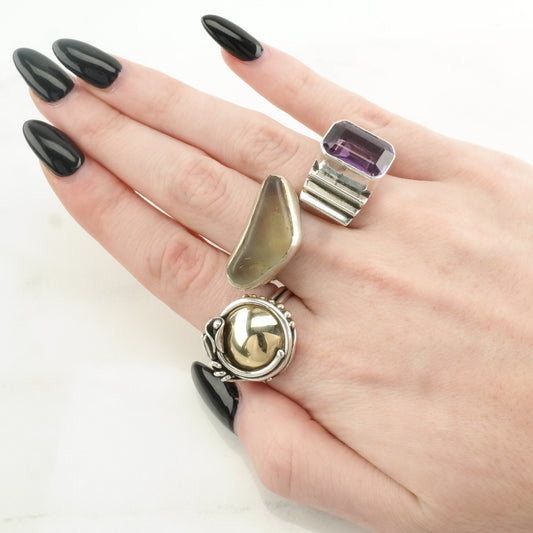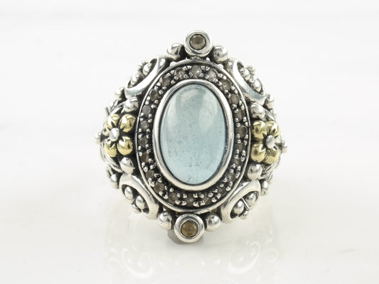 Vintage Barbara Bixby Silver Ring Topaz 18K Gold Sterling Size 7