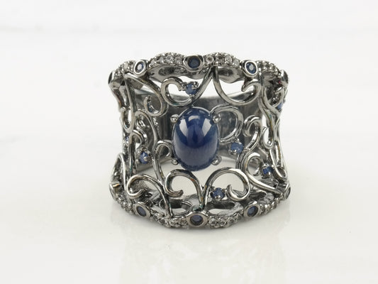 Carlo Viani Silver Ring Sapphire White Topaz Cigar Band Sterling