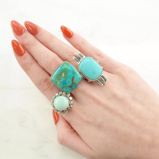Vintage DTR Silver Ring Reconstituted Turquoise Large, Square Sterling Blue Size 7