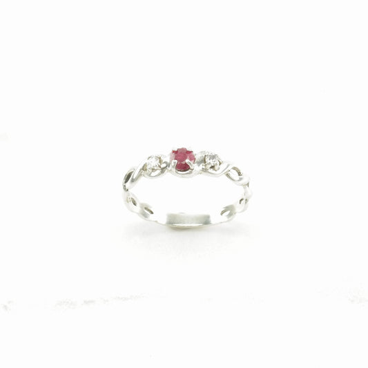 Vintage Sterling Silver Ring Ruby, CZ Twisted Size 8 1/2