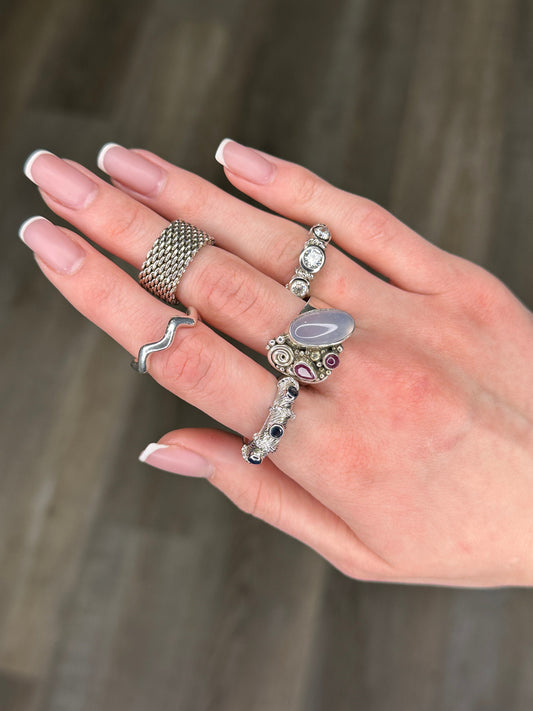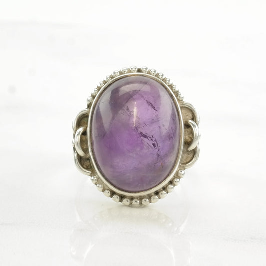 Vintage Sterling Silver Ring Amethyst Chain Link Accent Size 8 3/4