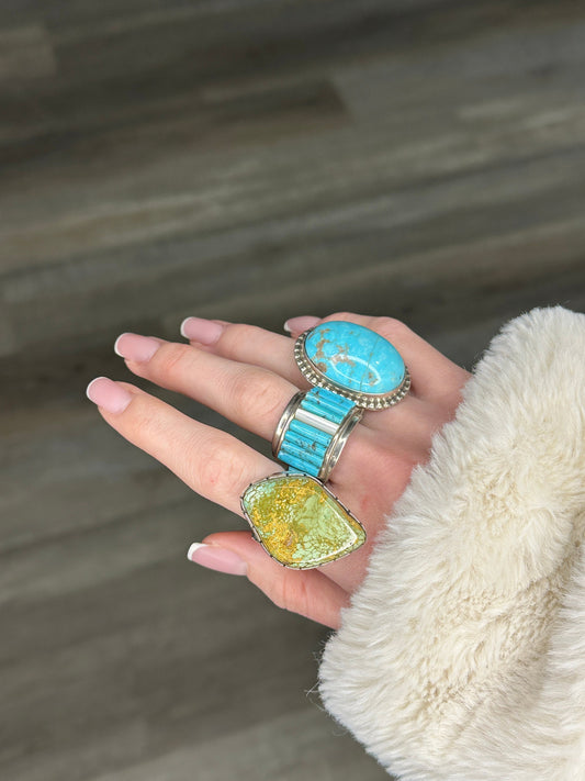 Native American #8 Turquoise Silver Ring Sterling Blue Size 8 1/2