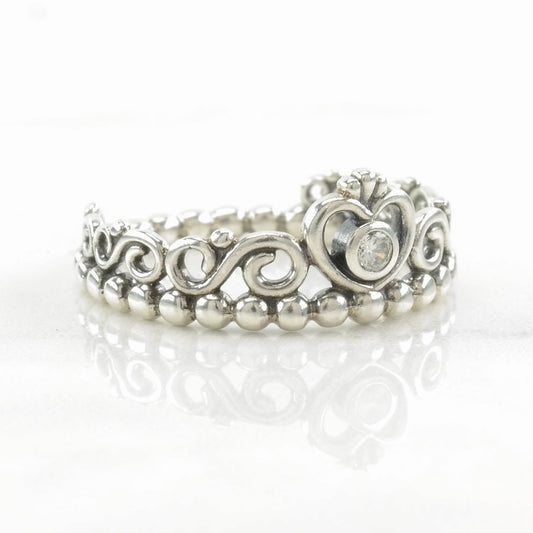 Vintage Pandora Ring CZ Heart, Crown Sterling Silver Size 8 1/2