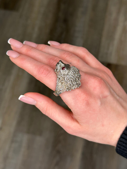Vintage Sterling Silver Ring Ruby Lion Red Size 8 3/4
