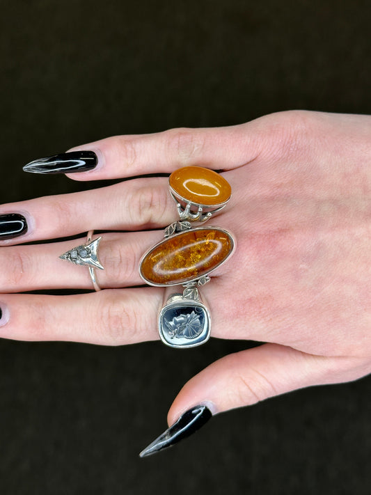 Vintage European Silver Ring Amber Leaf Size 8 1/2